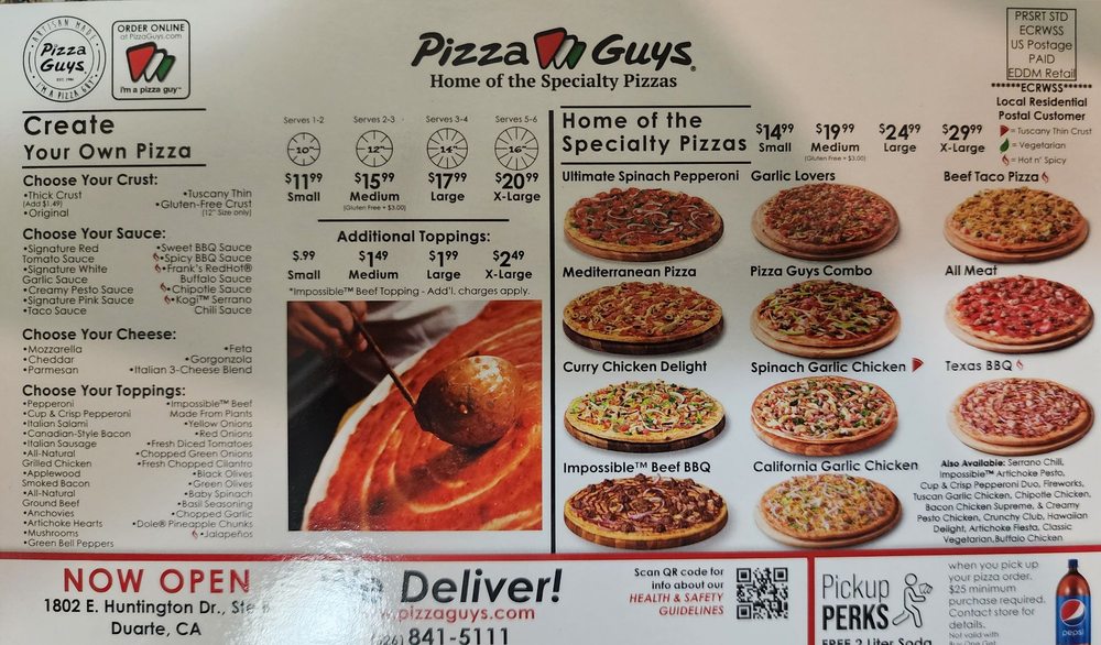 Welcome to Pizza Guys Duarte, where delicious pizza and mouthwatering wings await you! Nestled at 1802 E Huntington Dr, Duarte, CA, this joint is a haven for food lovers with its extensive menu that caters to every craving.